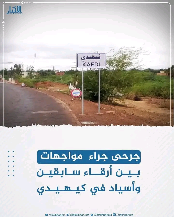 مواجهات في كيهيدي بين ارقاء سابقين واسياد أثر خلاف علي إمامة المسجد أدت إلي سقوط تسعة جرحي وصفت جروح احدهم بالبالغة