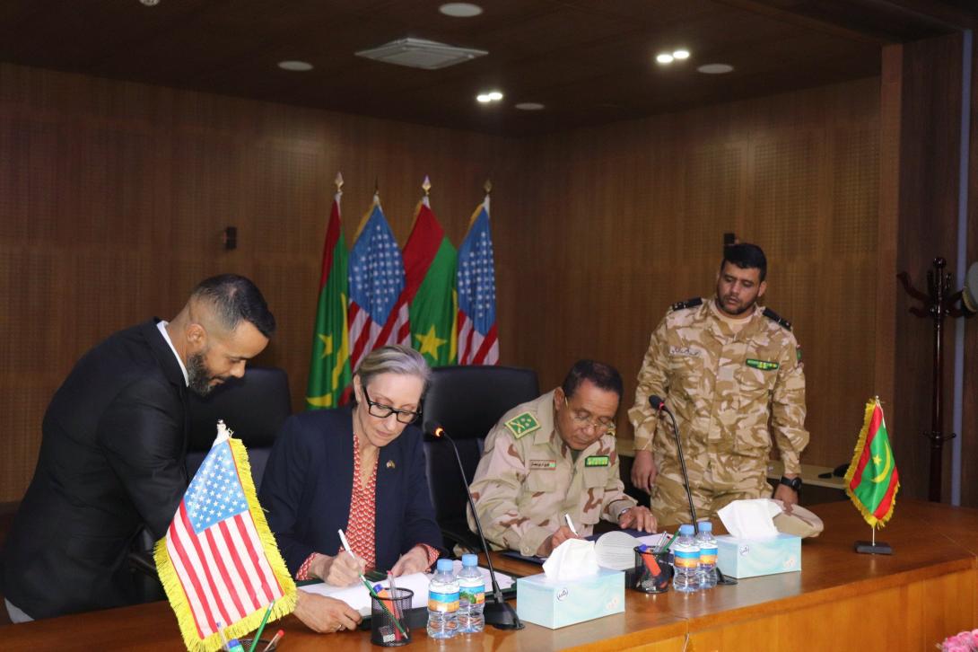 وقالت في إيجاز لها: "وقّعت القائمة بالأعمال وكالة، كورينا آر. ساندرز، وقائد الأركان العامة للجيوش الموريتانية، الفريق محمد ولد الرايس، اتفاقيةً بتاريخ 16 ديسمبر المنصرم لنقل معدات عسكرية أمريكية بقيمة 3.6 ملايين دولار إلى القوات المسلحة الموريتانية، وذلك في إطار الاستعدادات للتمرين العسكري السنوي «فلينتلوك» الذي تنظمّه القيادة العسكرية الأمريكية في إفريقيا (أفريكوم)".